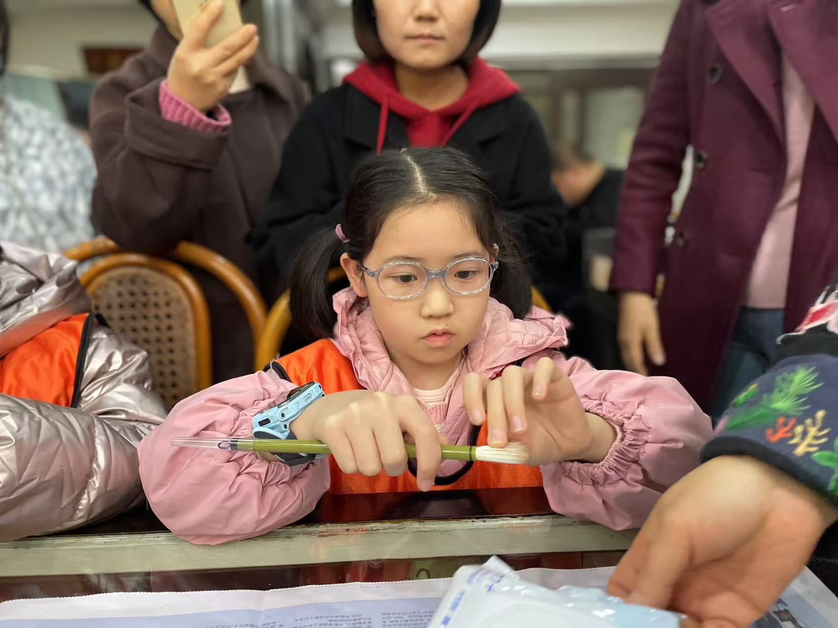 小记者们亲身体验毛笔制作的过程;从浸毛、梳毛、结扎到装管,每一步都需极度的耐心与细致,让小记者们深刻体会到了“匠心”二字的重量。